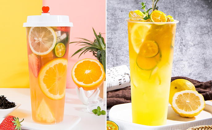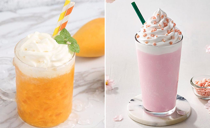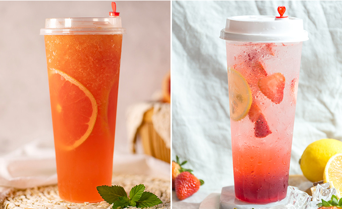 血橙红西柚、热带气泡饮、仲夏芒果星冰乐、樱花草莓星冰乐超级水果茶、金桔柠檬
