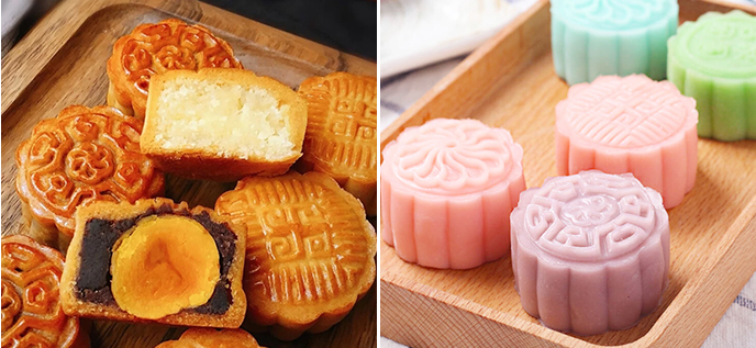 传统广式月饼、冰皮月饼、绿豆糕、流心月饼、蛋黄酥、紫著酥、苏式月饼、鲜花饼