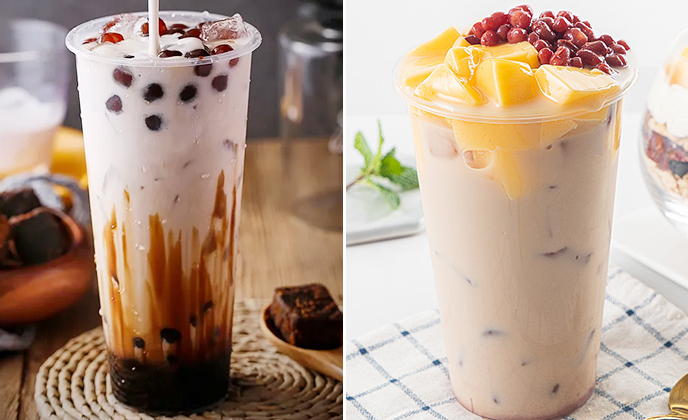 黑糖珍珠奶茶、炭烤奶茶、港式奶茶、紫薯芋圆奶茶