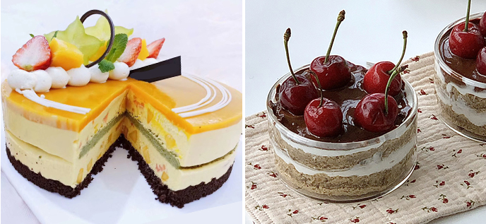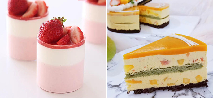 星空淋面、镜面淋面、巧克力喷砂、豹纹淋面、草莓芝士慕斯、乳酪慕斯、蓝莓慕斯、百香果慕斯、黑白巧克力慕斯、双浆果芝士蛋糕