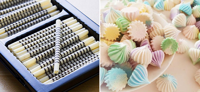 巧克力围边、巧克力方块、美人鱼尾、海星、烟卷、弹簧卷、羽毛、树叶、马林糖